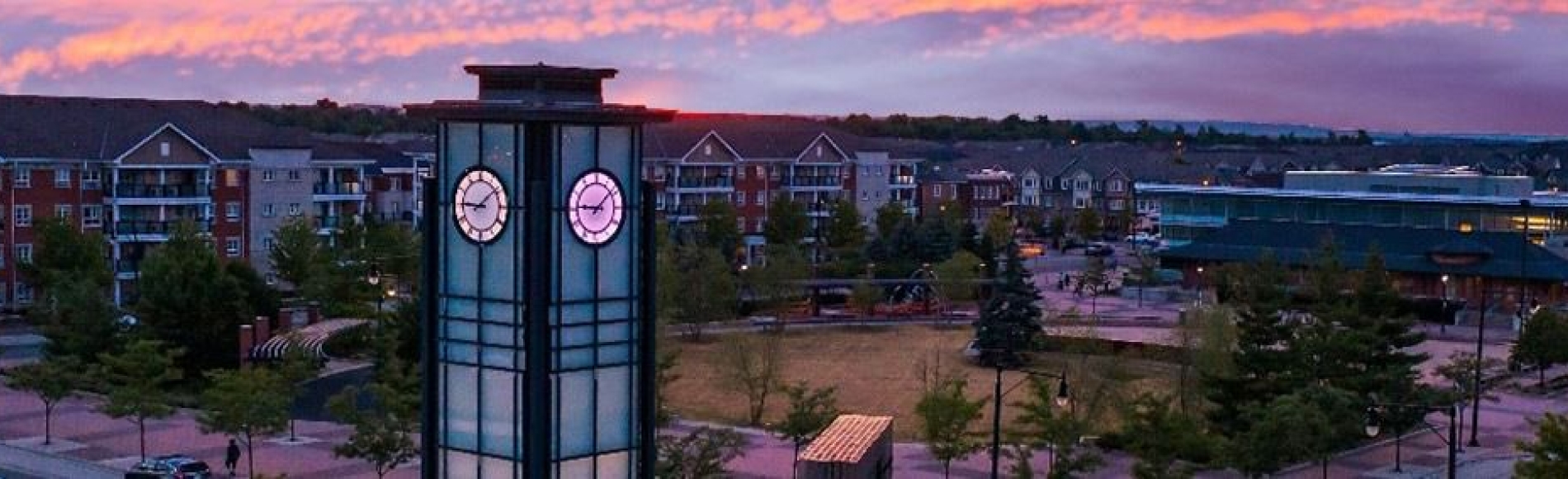 It is a neighbourhood right off the Go station with a unique design in a residential area. The centre of this mainstreet has a library and an ice rink. The rest is residential town homes with the bottom floor being businesses.